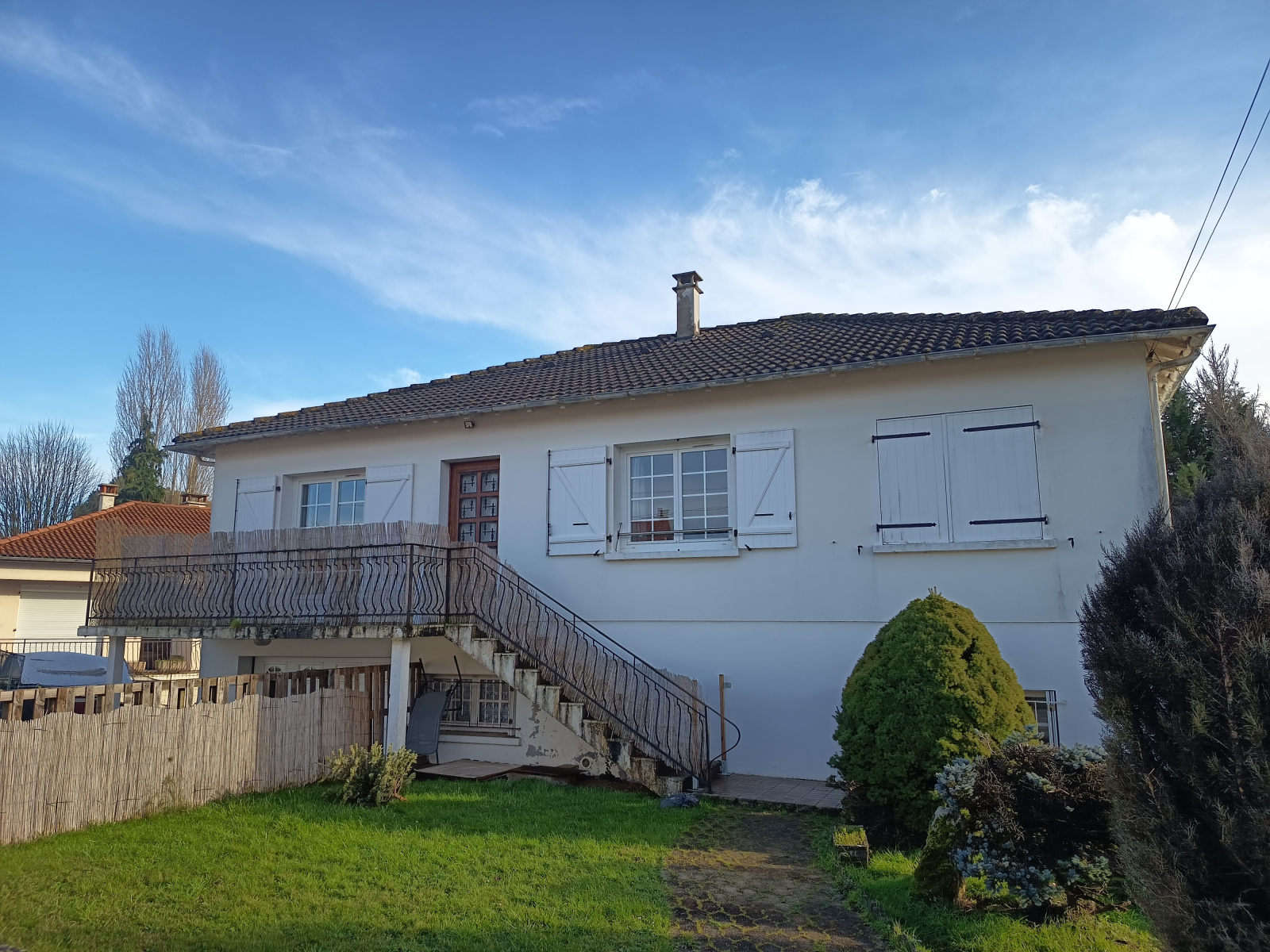 L'agence RIBOT IMMOBILIER vous propose en exclusivité une maison sur sous sol comprenant au rez de chaussée un grand garage, une buanderie, une chaufferie, une arrière cuisine, une salle d'eau, un wc et une chambre. Possibilité de créer un studio au rez de chaussée avec son entrée et accès indépendant. A l'étage un grand salon avec une cheminée insert, une cuisine indépendante recente équipée et aménagée. Elle comprend également 3 chambres une salle de bains et un wc. Chauffage chaudière gaz de ville, fenêtres double vitrage à l'étage. Prévoir rafraichissement des peintures. Pas de gros travaux à prévoir. Disponible de suite.